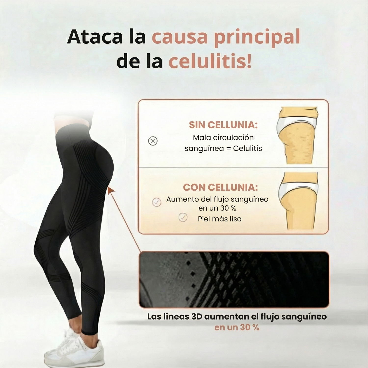 Los únicos leggings probados clínicamente que actúan sobre la VERDADERA causa de la celulitis.